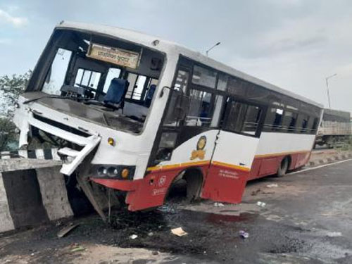 कणकवली : कणकवली तालुक्यातील मुंबई-गोवा महामार्गावर नांदगाव-ओटव फाटा येथील पुलावर पुणे ते ओरोस पर्यंत विद्यार्थ्यांची सहल घेऊन येणाऱ्या एसटी बसचा अपघात झाला. पुलावरील रस्ता दुभाजकाच्या संरक्षक कठड्याला आदळून हा अपघात झाला आहे. ही घटना काल, मंगळवारी मध्यरात्री २ वाजताच्या सुमारास घडली आहे. सुदैवाने या अपघातामध्ये कोणत्याही जीवितहानी झाली नसली तरी काही विद्यार्थ्यांना किरकोळ दुखापत वगळता मोठी इजा नसल्याने सर्वांनी सुटकेचा निःश्वास टाकण्यात आला आहे. या घटनेची माहिती नांदगाव पोलीस पाटील वृषाली मोरजकर यांनी ताबडतोब कणकवली पोलिस ठाण्यात दिल्याने पोलिस ठाण्यातून तत्काळ यंत्राणा कामाला लागली. त्यानंतर तत्काळ कणकवली पोलिस ठाण्याचे हवालदार चंद्रकांत झोरे, माने, प्रणाली जाधव हे घटनास्थळी दाखल झाले. तसेच घटनेचा पंचनामा केला. अधिक तपास सुरु आहे.