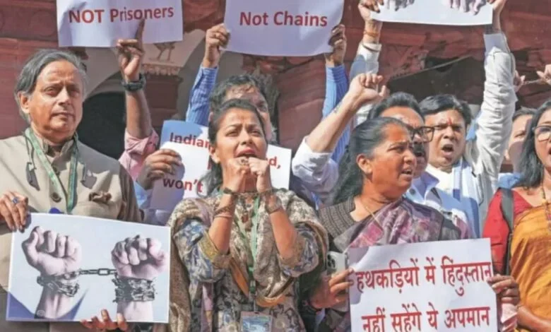 नवी दिल्ली : अमेरिकेत अवैध वास्तव्य करणाऱ्या भारतीयांना हाता-पायात बेड्या घालून अमानुष वागणूक देत मायदेशी पाठवल्या मुद्द्यावरून गुरुवारी संसदेत विरोधकांनी सरकारला कोंडीत पकडले. कोलंबियासारखा छोटा देश अमेरिकेविरोधात उभे राहण्याची हिंमत करू शकतो तर, भारताने अमेरिकेला जाब विचारण्याचे धाडस का दाखवू शकत नाही, असा सवाल राज्यसभेत विचारण्यात आला. त्यावर, बेड्या घालणे हा अमेरिकेच्या स्थलांतरण व आयात शुल्क संचालनालयाच्या मानक संचालन प्रक्रियेचा भाग आहे, असे उत्तर परराष्ट्रमंत्री एस. जयशंकर यांनी दिले. त्याच वेळी स्थलांतरितांना अमानुष वागणूक मिळू नये यासाठी अमेरिकेशी बोलणी सुरू असल्याचा दावाही त्यांनी केला.