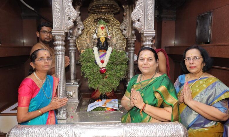 पंढरपूर दि.८: महाराष्ट्र विधानपरिषदेच्या उपसभापती डॉ. नीलम गोऱ्हे यांच्या हस्ते पंढरपूर येथे श्री. विठ्ठल मंदिराच्या गाभाऱ्यात आज पहाटे नित्यपूजा करण्यात आली. याप्रसंगी त्यांच्या सोबत त्यांच्या भगिनी आणि स्त्री आधार केंद्राच्या विश्वस्त जेहलम जोशी उपस्थित होत्या.