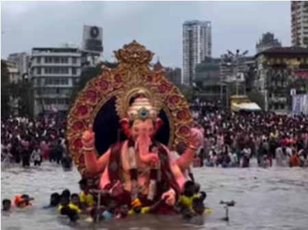 समुद्राला आलेल्या भरती मुळे लालबाग च्या राजाचे विसर्जन रात्री १०.३० नंतर…