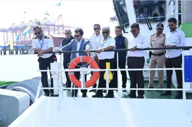 महाराष्ट्र: महाराष्ट्रशील महालच्या बांद्रपेळी एक असलेल्या जवाहरलाल नेहरू पोर्ट, उरण येथे बंदर विकास तसेच मत्स्य व्यवसाय नामदार नितेश राणे यांनी अद्यापर्यंत त्राणातील उषज AQUA STENTOR E-Tug या बोटीची पहणी केली. या तेथील केंद्रीय बालासाहेब की. पवार (उप सरधक्ष-सागरी), दिगंबर कें. वॉर्डन एरिया सेल्स-डेमेन शिपयार्ड) आणि अरुण सिहा (व्यवसायिक संचालक-तर इंग्रजकर्स प्रायवेट लिमिटेड) उपस्थित होते.