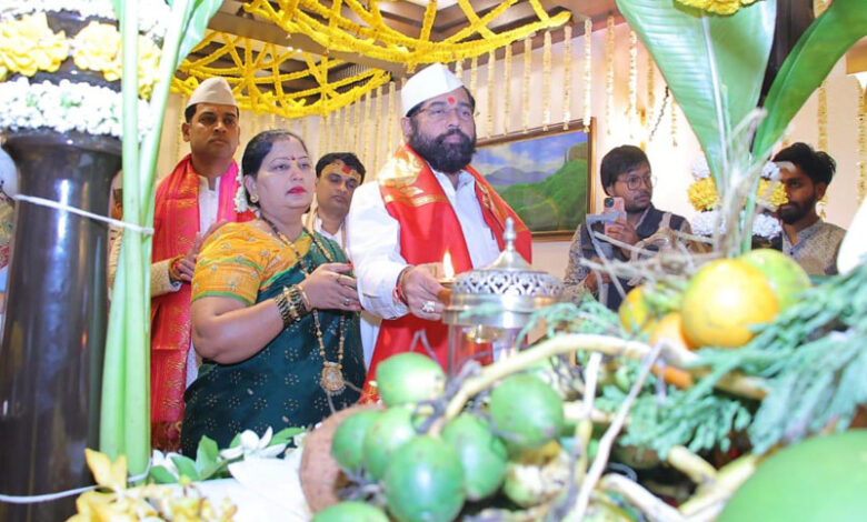 मुंबई – गणेशोत्सवानिमित्त आज ‘वर्षा’ या शासकीय निवासस्थानी मुख्यमंत्री एकनाथ शिंदे यांनी सपत्नीक श्री गणरायाची विधिवत पूजा करुन प्रतिष्ठापना केली. यावेळी मुख्यमंत्र्यांनी राज्यातील जनतेला सुख समृद्धी मिळू दे अशी प्रार्थना केली दरवर्षीप्रमाणे यंदाही मुख्यमंत्र्यांच्या ‘वर्षा’ निवासस्थानी गणरायाचे आगमन झाले. मुख्यमंत्री एकनाथ शिंदे, त्यांच्या पत्नी सौ. लता शिंदे, खासदार डॉ. श्रीकांत शिंदे, स्नुषा सौ. वृषाली शिंदे, नातू कु. रुद्रांश यावेळी उपस्थित होते यावेळी मुख्यमंत्र्यांनी राज्यातील जनतेला गणेशोत्सवाच्या शुभेच्छा दिल्या. ते म्हणाले की, गणरायाचं आगमन झालंय. आपल्या आयुष्यात पण आनंद, समाधान, समृद्धी येवो, सर्वाँना सुबुद्धी मिळो हीच प्रार्थना. प्रत्येक गणोशोत्सव एक नवी ऊर्जा, प्रेरणा आणि उत्साह घेऊन येतो. सगळीकडे मंगलमय आणि पवित्र वातावरण निर्माण होतं. गणेशोत्सवातून महाराष्ट्राच्या महान संस्कृतीचं दर्शन घडतं. सगळ्या जगाचं महाराष्ट्राकडे लक्ष लागलेले असते. या काळात महाराष्ट्राच्याच नाही तर देशात आणि विदेशातही मराठी माणसांत उत्साह-जोश दिसतो.