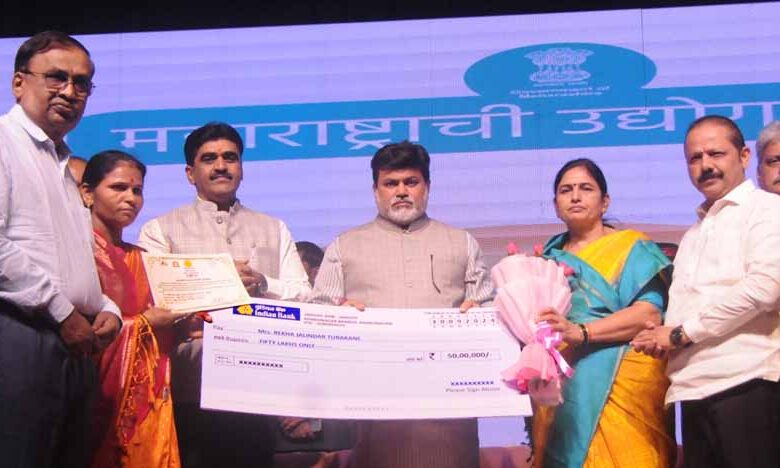 उद्योग विभागातर्फे येथील हॉटेल डेमोक्रॅसी येथे आज सकाळी ‘उद्यमात सकल समृद्धी- महाराष्ट्राची उद्योग भरारी’ या कार्यक्रमाचे आयोजन करण्यात आले होते. त्यावेळी उद्योग मंत्री सामंत बोलत होते. यावेळी खासदार राजाभाऊ वाजे, आमदार सीमा हिरे, महाराष्ट्र चेंबर्स ऑफ कॉमर्सचे अध्यक्ष ललित गांधी, उद्योजक धनंजय बेळे, संदीप सोनवणे, कांतिलाल चोपडा, अजय बोरस्ते, महाराष्ट्र औद्योगिक विकास महामंडळाच्या उपमुख्य कार्यकारी अधिकारी सोनाली मुळे, महाराष्ट्र औद्योगिक विकास महामंडळाचे प्रादेशिक अधिकारी नितीन गवळे, सहसंचालक शेळके, कार्यकारी अभियंता पवार, व्यवस्थापक अतुल दवंगे आदी उपस्थित होते. यावेळी मंत्री सामंत यांच्या हस्ते विविध लाभार्थ्यांना धनादेश आणि नियुक्ती पत्राचे वितरण करण्यात आले.