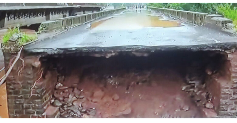 आज पहाटे हा प्रकार घडला असून पुलाच्या मधोमध असलेला काही भाग वाहून गेला आहे त्यामुळे या मार्गावरील वाहतूक आता पूर्णपणे ठप्प झाली आहे याठिकाणी उपस्थित नागरिकांच्या म्हणण्यानुसार गेले दोन दिवस या पुलावरून पाच ते सहा फूट उंचीवरून पाणी सतत वेगाने वाहत होते हा पूल ब्रिटिशकालीन होता नवीन पुलाचे काम सुरू असल्यामुळे या पुलावरूनच सध्या मुंबई गोवा महामार्गावरील वाहतूक सुरू होती आज पावसाचा जोर कमी झाल्यानंतर नदीच्या पाण्याचा जोरही कमी झाला परंतु आज पहाटेच्या सुमाराला या पुलाचा काही भाग वाहून गेला त्यामुळे पुलाला मोठे भगदाड पडल्यासारखे दृश्य आहे.