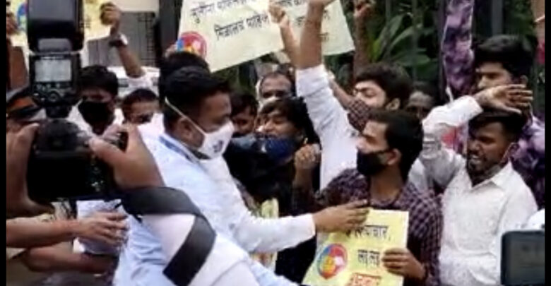 शालेय विद्यार्थ्यांना शुल्क माफी देण्याच्या मागणी साठी छात्रभारतीचे शिक्षणमंत्री वर्षा गायकवाड यांच्या बंगल्यासमोर आंदोलन..