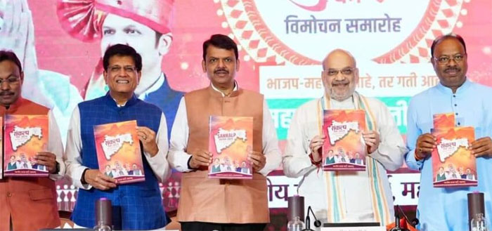 मुंबई : भाजपाने आज महाराष्ट्र विधानसभेसाठी आपले संकल्पपत्र प्रसिद्ध केले. केंद्रीय गृहमंत्री अमित शहा, उपमुख्यमंत्री देवेंद्र फडणवीस , केंद्रीय मंत्री पियुष गोयल, भाजपाचे केंद्रीय सरचिटणीस विनोद तावडे, प्रदेशाध्यक्ष चंद्रशेखर बावनकुळे आदी नेते यावेळी उपस्थित होते.