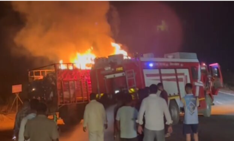 या घटनेमुळे महामार्गावरील वाहतूक काहीकाळ थबकली. सुदैवाने चालक व क्लिनर गाडीत नव्हते. अग्निशमक दलाने तातडीने घटनास्थळी पोहोचून आग आटोक्यात आणली. या घटनेत ट्रकमधील धान्य जळून खाक झाले. आगीचे कारण समजू शकले नाही.