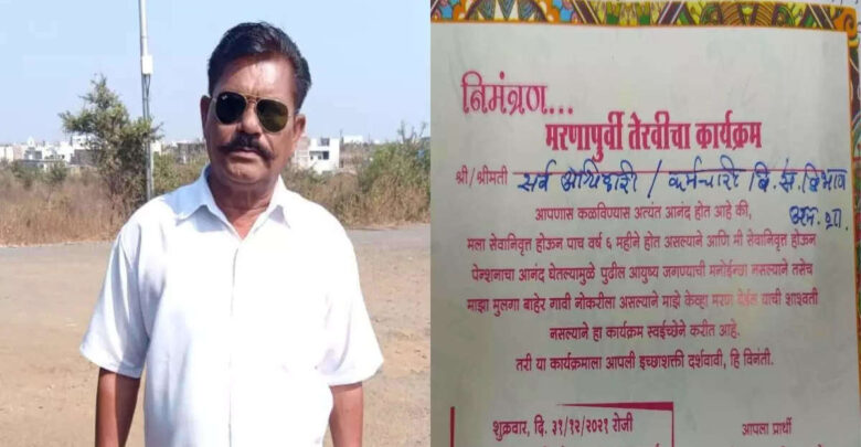 मरण्यापूर्वी तेराव्याचा कार्यक्रम कसा शक्य आहे? असा विचार आज प्रत्येकाच्या मनात आला असेल, पण हो हे खरं आहे. या व्यक्तीने फक्त तेराव्याचा कार्यक्रम ठेवलाच नाही, तर या कार्यक्रमासाठी त्यांने चक्क पत्रिका सुद्धा छापल्यात व नातेवाईकांमध्ये वाटल्यात सुद्धा. राज्य राखीव पोलीस दलातील सेवानिवृत्त पोलीस उपनिरीक्षक सुखदेव दगडुजी डबरासे या वल्ली माणसांने आपल्या मरणापूर्वी छापलेली तेराव्याची पत्रिका आता जोरदार चर्चेत आहे.