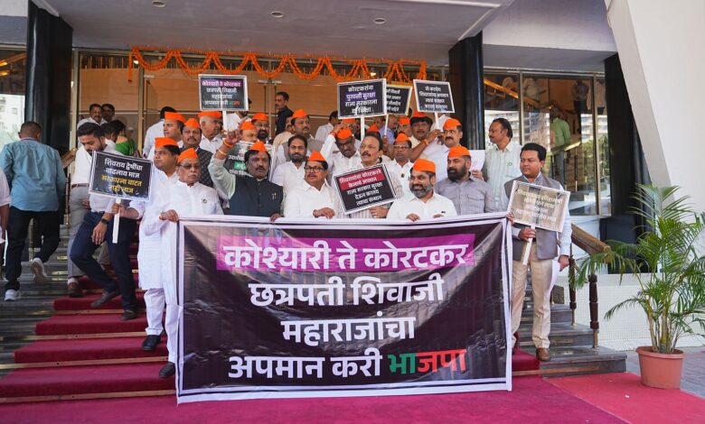विरोधकांनी “कोश्यारी ते कोरटकर, भाजपकडून छत्रपती शिवाजी महाराजांचा अपमान” असा आरोप करत आक्रमक भूमिका घेतली. तसेच, “सोलापूरकर ते कोरटकर, अटक करा” अशा घोषणा देत या प्रकरणातील दोषींवर कठोर कारवाईची मागणी केली.